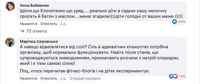 Многие родители в комментариях советуют Клопотенко самому есть свои блюда и “перестать издеваться над детьми”. Или же начинать такую реформу не с садиков и школ, а с Верховной Рады.