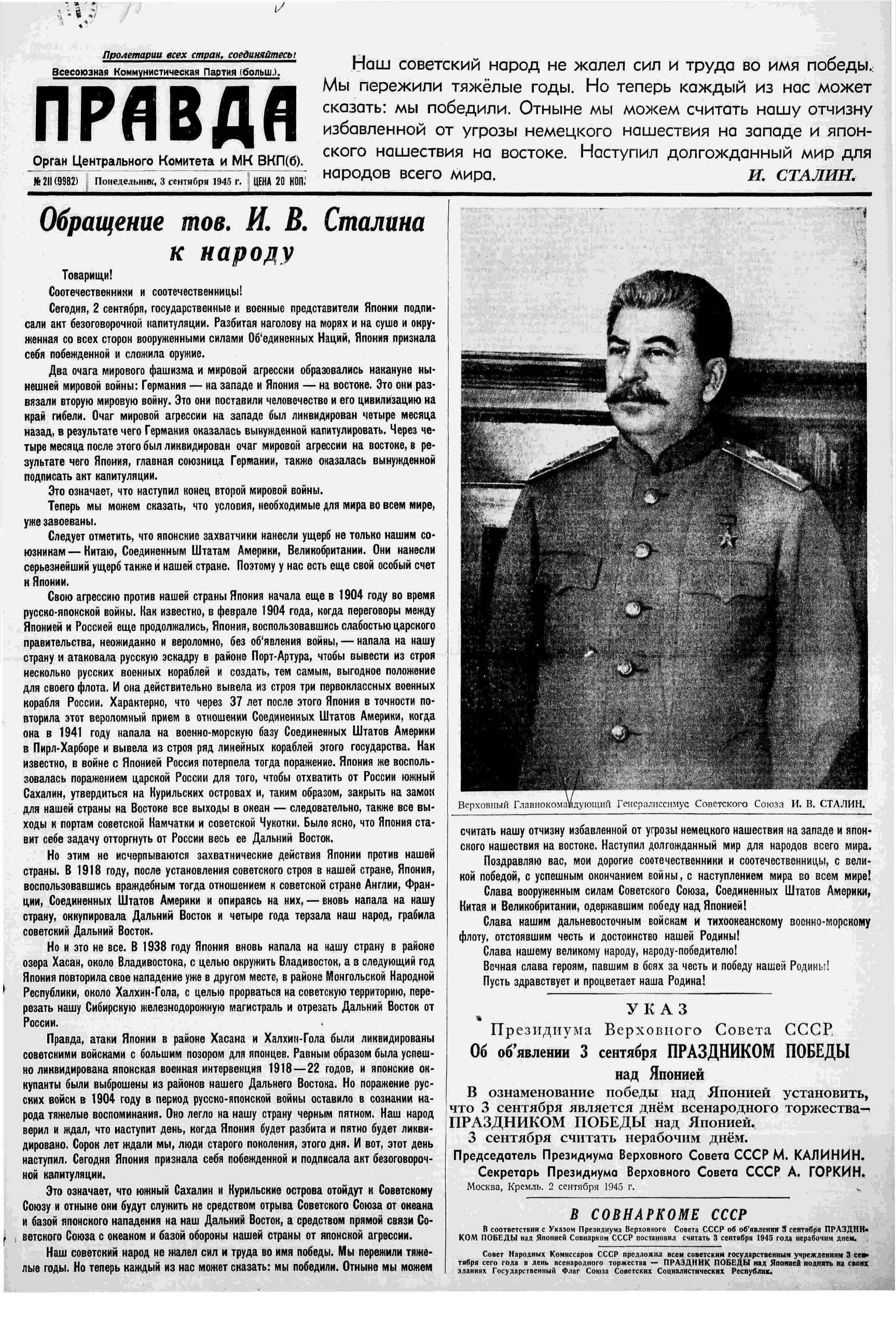 Заявление Сталина о капитуляции Японии
