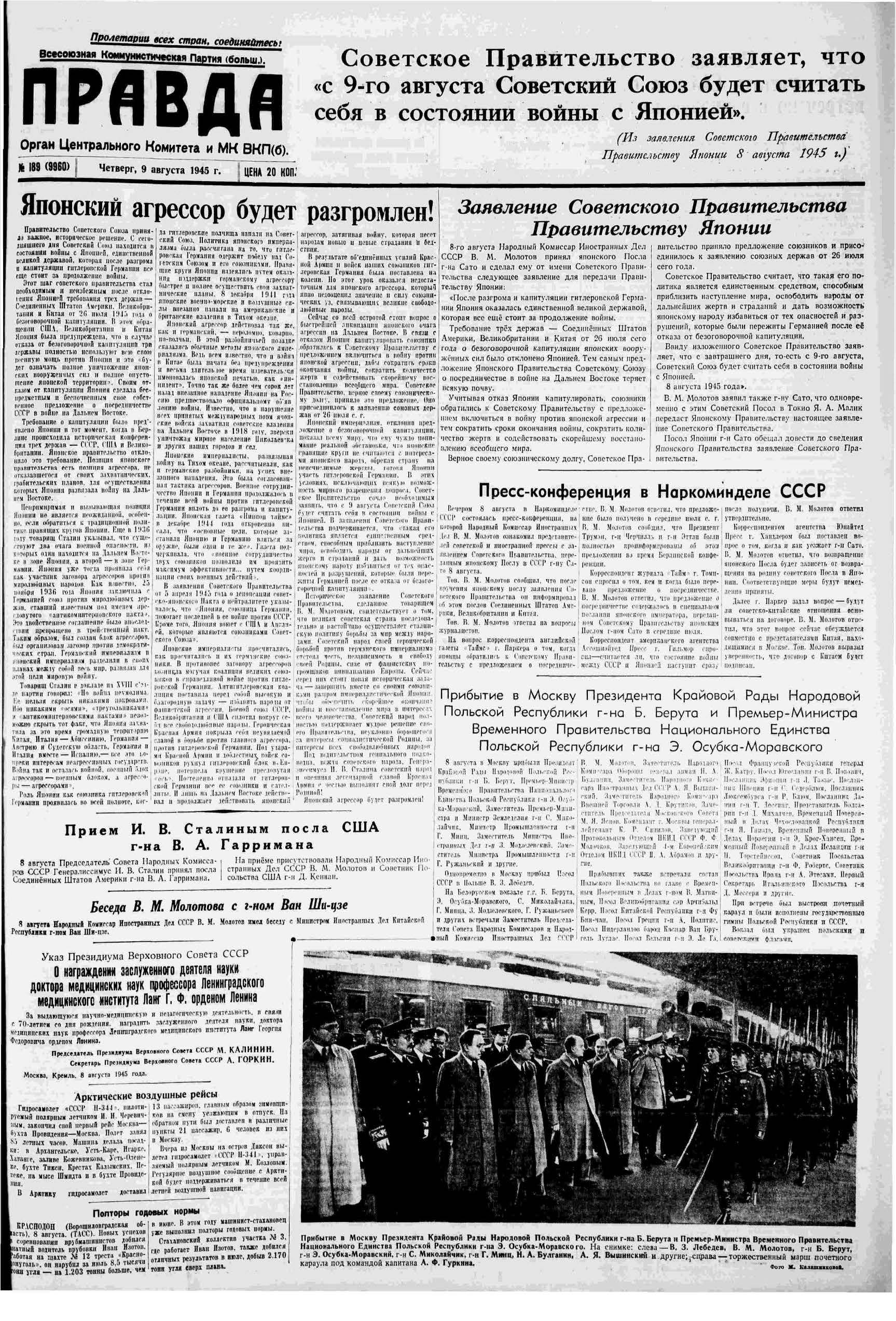 9 августа 1945 года вошло в историю сразу несколькими событиями. В этот день Красная армия начала наступление на японскую Квантунскую армию в Маньчжурии, а Штаты сбросили вторую ядерную бомбу на Японию.