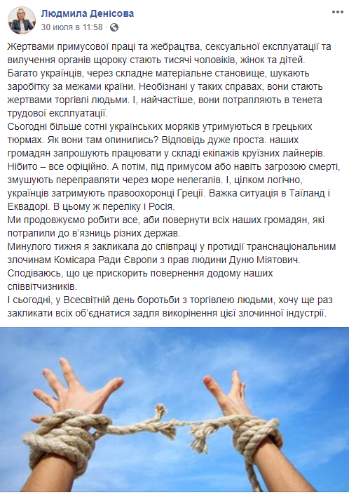 Впрочем, довольно рискованным. О чем даже написала на своей странице в Facebook уполномоченная Верховной Рады по правам человека Людмила Денисова.