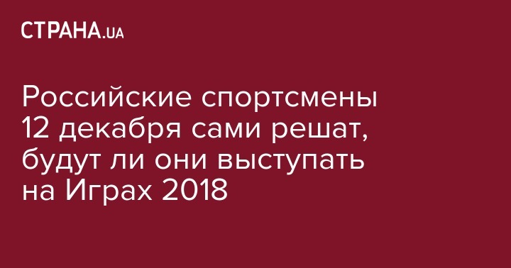 Российские спортсмены 12 декабря сами решат, будут ли они выступать на Играх 2018