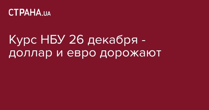 Во вторник, 26 декабря, Нацбанк установил курс гривны по отношению к иностранным валютам. По сравнению с предыдущим рабочим днем 22 декабря доллар и евро подорожали.
