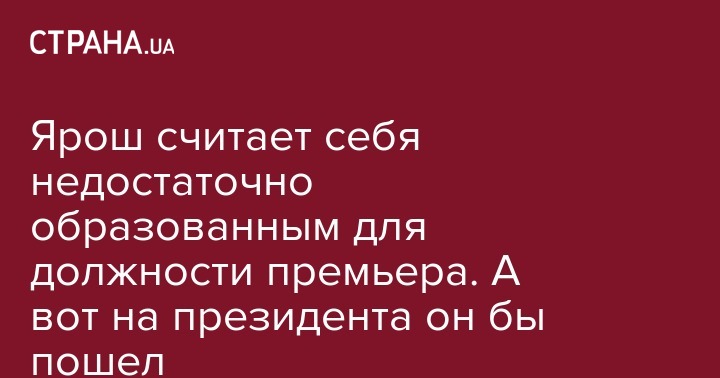 Ярош считает себя недостаточно образованным для должности премьера. А вот на президента он бы пошел