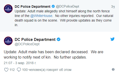 Об этом сообщается в официальном Twitter-аккаунте полиции Вашингтона.