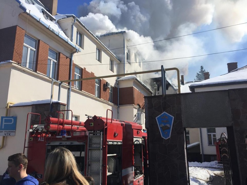 В центре Черновцов полыхает здание транспортного колледжа. Фото