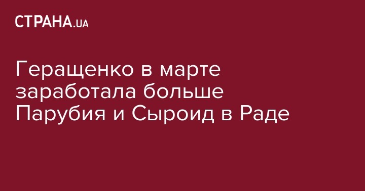 Зарплата первого заместителя председателя Верховной Рады Ирины Геращенко в марте оказалась выше, чем у председателя Верховной Рады Андрея Парубия и его заместителя председателя Оксаны Сыроид.