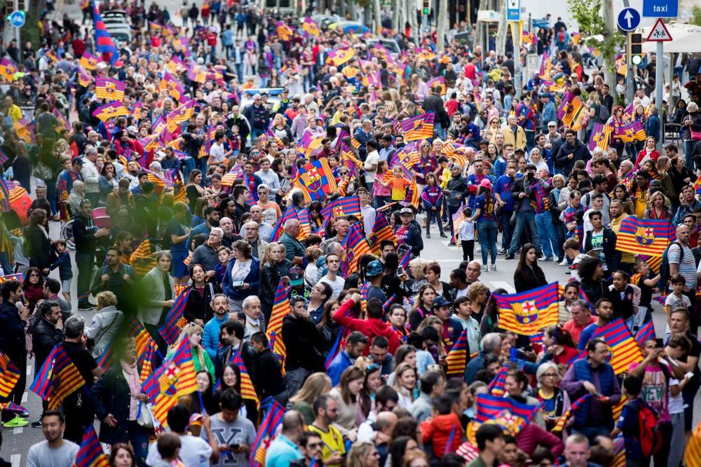 Игроки каталонского клуба проехали по центральным улицам города на автобусе с открытым верхом, демонстрируя болельщикам трофей.