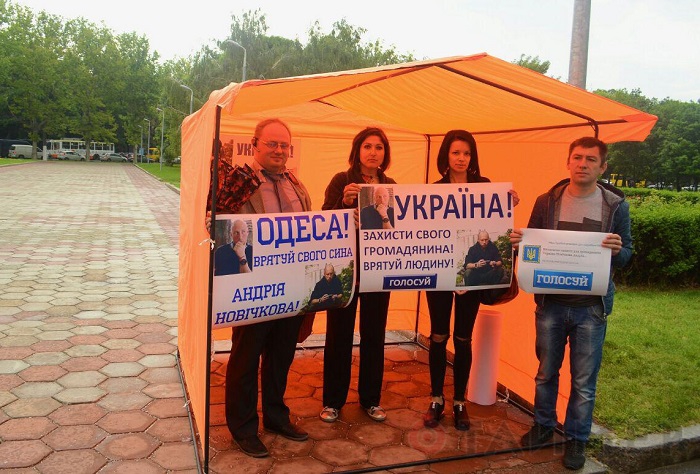 При этом в палатке у здания облсовета перед сессией стояли друзья и близкие Андрея с плакатами о его спасении.