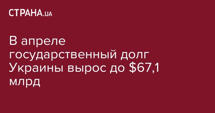 В апреле государственный долг Украины вырос до $67,1 млрд