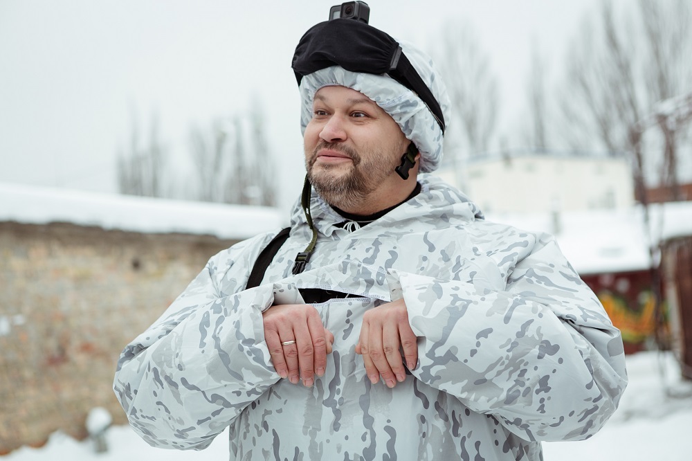- Отряд спецназа выполняет особые боевые задачи и должен быть мобильным, маневренным и выносливым. И в этом вопросе не последнюю роль играет экипировка бойца. Но у нас постоянно происходили казусы, из-за которых приходилось переснимать сцены: то обойма выпадала из муляжа автомата, то шлемы при беге спускались на глаза. О том, что было с экипировкой при кувырках, я вообще молчу! (Смеется.) Кстати, в сценарии был момент, где мой герой не успевает убежать от бандитов из-за того, что вовремя не услышал команду коллег. Я предложил режиссеру другой вариант: пусть Родя случайно упадет, ведь есть некая неловкость движений в характере моего героя. Хачатур Василян предложение отверг. Но, когда мы начали снимать этот кадр, я нечаянно поскользнулся и упал по-настоящему: пол был скользким, обувь была скользкой, а еще плюс очки налезли на нос. Получился смешной кадр.