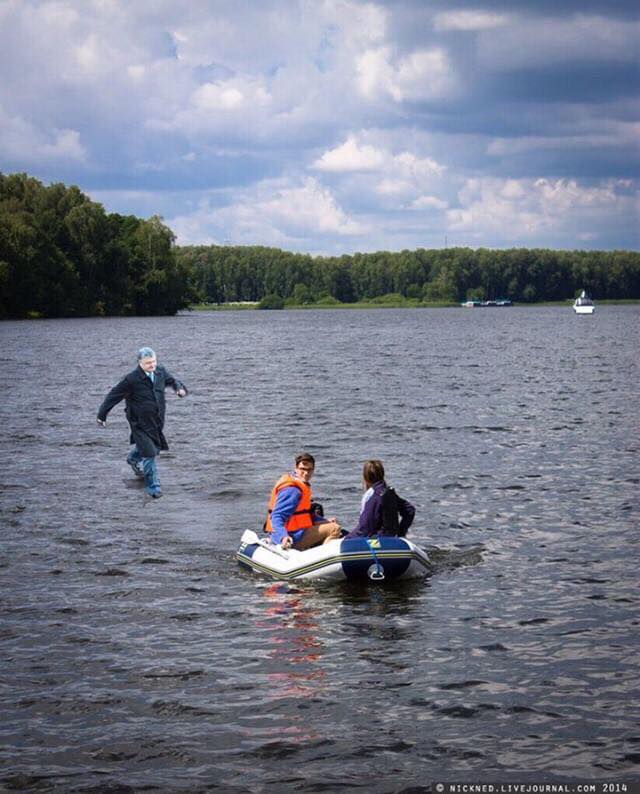 После того как в сети появилась фотография, как 11 марта президент Украины Петр Порошенко убежал со своего митинга с избирателями в Житомире из-за присутствия на мероприятии активистов "Нацкорпуса", снимок не только вызвал бурную волну обсуждений, но и стал основой для множества фотожаб.