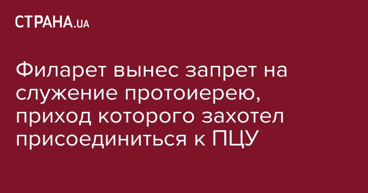 Филарет вынес запрет на служение протоиерею, приход которого захотел присоединиться к ПЦУ