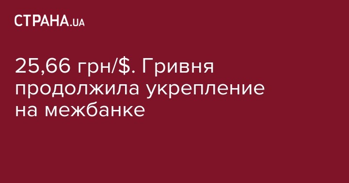 25,66 грн/$. Гривня продолжила укрепление на межбанке