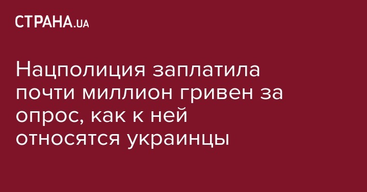 Нацональная полиция 11 ноября перевела 988 тысяч гривен ООО "Центр стратегического развития территорий" за услуги по опросу общественности насчет доверия к ней. Об этом сообщают "Наші гроші" со ссылкой на данные системы "Prozorro".
