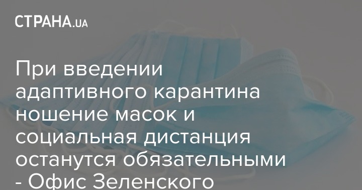 При введении адаптивного карантина ношение масок и социальная дистанция останутся обязательными - Офис Зеленского