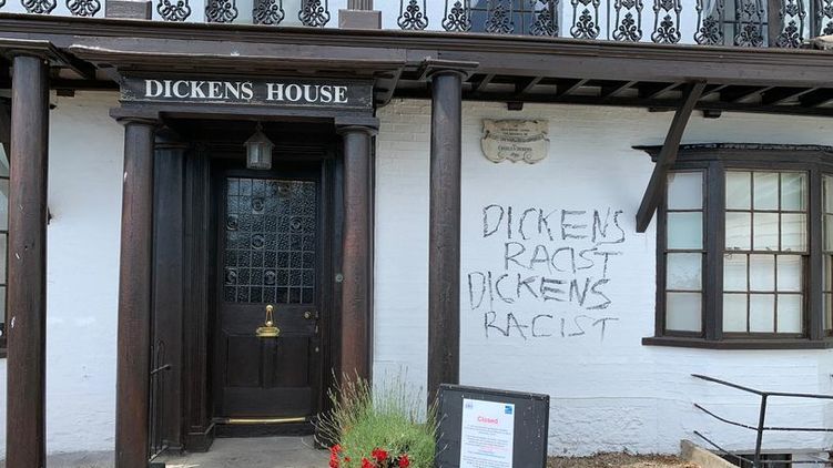 Уточняется, что вандалы не только нанесли черной краской фразу "Диккенс - расист", но и разрушили знак с указанием улицы, названной в честь писателя. В полиции заявили, что к ним не поступало обращений по поводу осквернения здания.