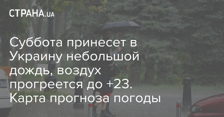 Суббота принесет в Украину небольшой дождь, воздух прогреется до +23. Карта прогноза погоды