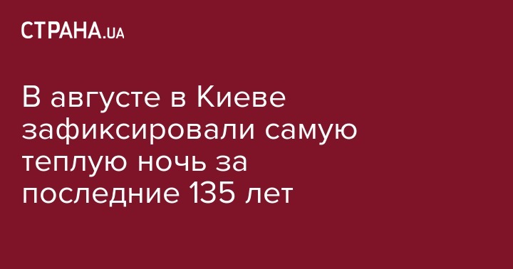 Киевляне пережили самую теплую ночь в августе за последние 135 лет. Оказывается, 23 августа ночная температура воздуха в Киеве побила температурный рекорд 1881 года. Об этом сообщает Центральная геофизическая обсерватория.