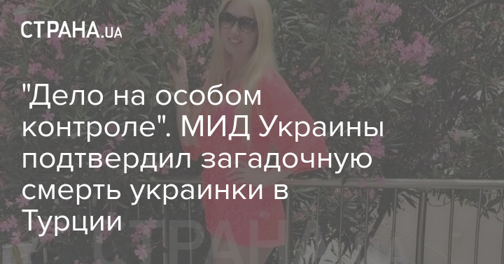 "Дело на особом контроле". МИД Украины подтвердил загадочную смерть украинки в Турции