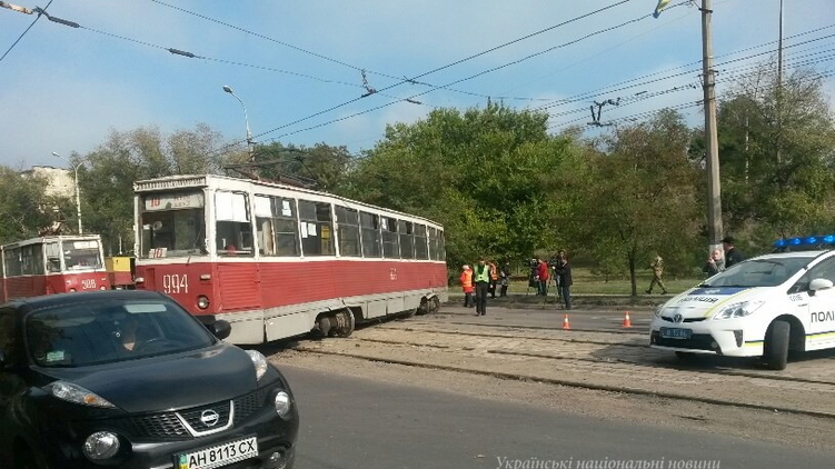 В Мариуполе трамвай с пассажирами слетел с рельсов