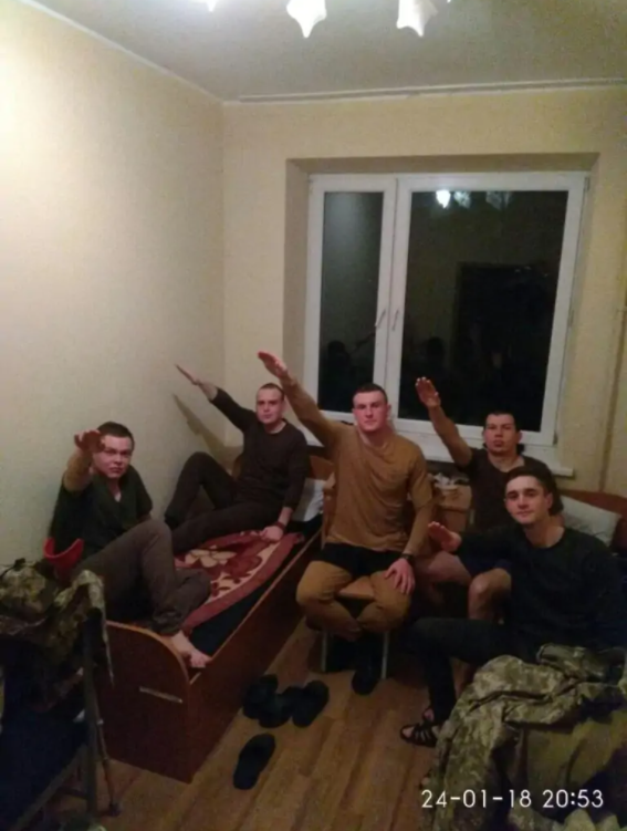 "Группа, возглавляемая людьми, имеющими связи с международным активным ультраправым движением "Азов", привлекла множество членов, в том числе нынешних и бывших курсантов НАСВ, которые сейчас служат в Вооруженных силах Украины. На фотографиях явные члены сообщества отдают нацистское приветствие и делают в сети, казалось бы, экстремистские заявления", - говорится в резюме доклада.