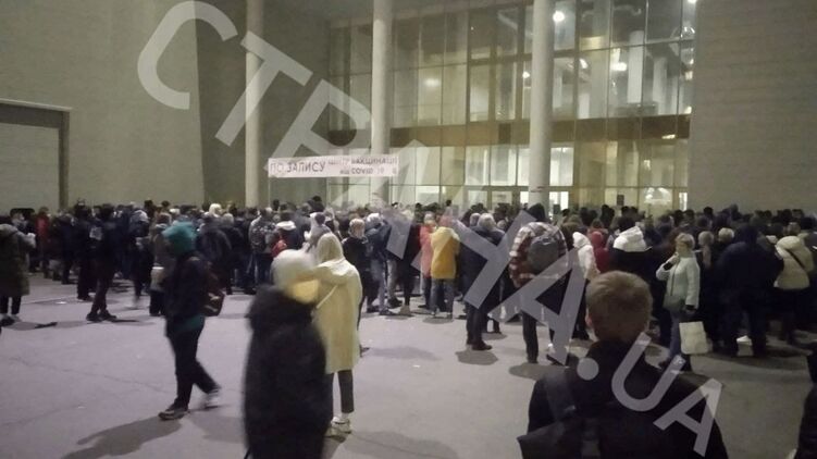 В Киеве возле Международного выставочного центра, в котором находится пункт вакцинации, желающим получить прививку от коронавируса приходится ждать своей очереди по три часа. Даже если люди записывались на вакцинацию в электронном виде на конкретное время. Из-за этого возле МВЦ образовалась огромная толкучка.