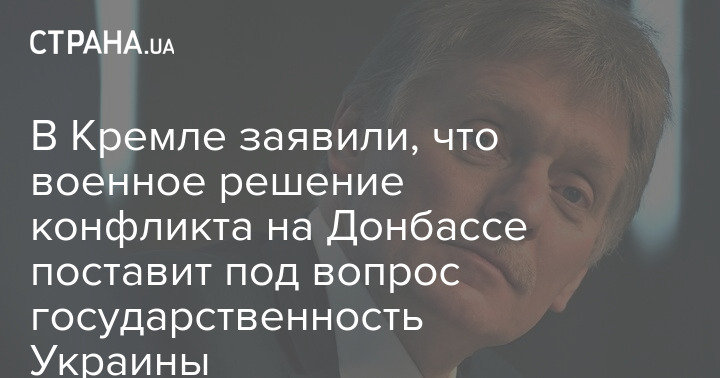 Пресс-секретарь президента РФ Дмитрий Песков заявил, что конфликт на Донбассе не должен решаться военным путем, иначе будет стоять вопрос украинской государственности.