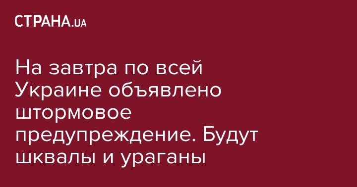 На завтра по всей Украине объявлено штормовое предупреждение. Будут шквалы и ураганы