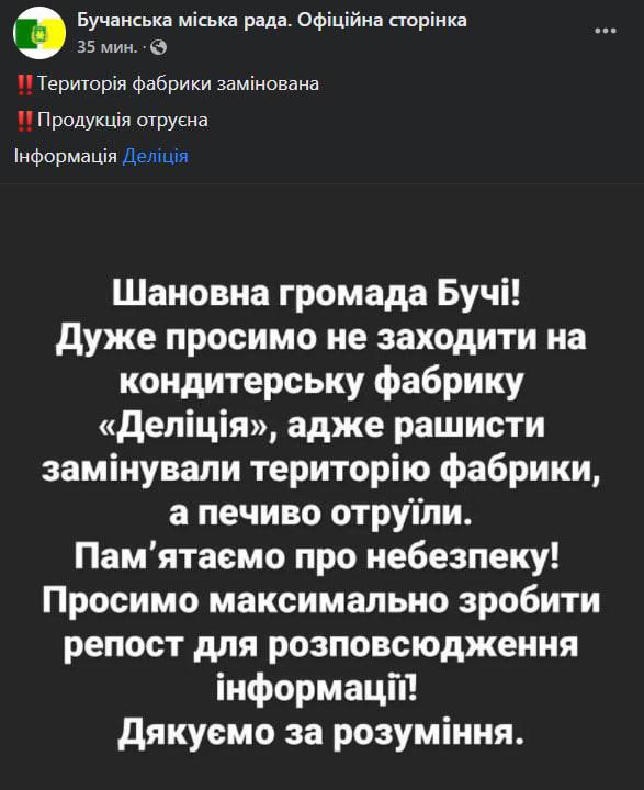 Ещё одно подтверждение того, что армия РФ полностью (или почти полностью) ушла из Киевской области.