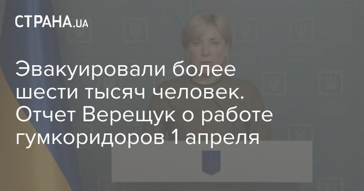 Эвакуировали более шести тысяч человек. Отчет Верещук о работе гумкоридоров 1 апреля