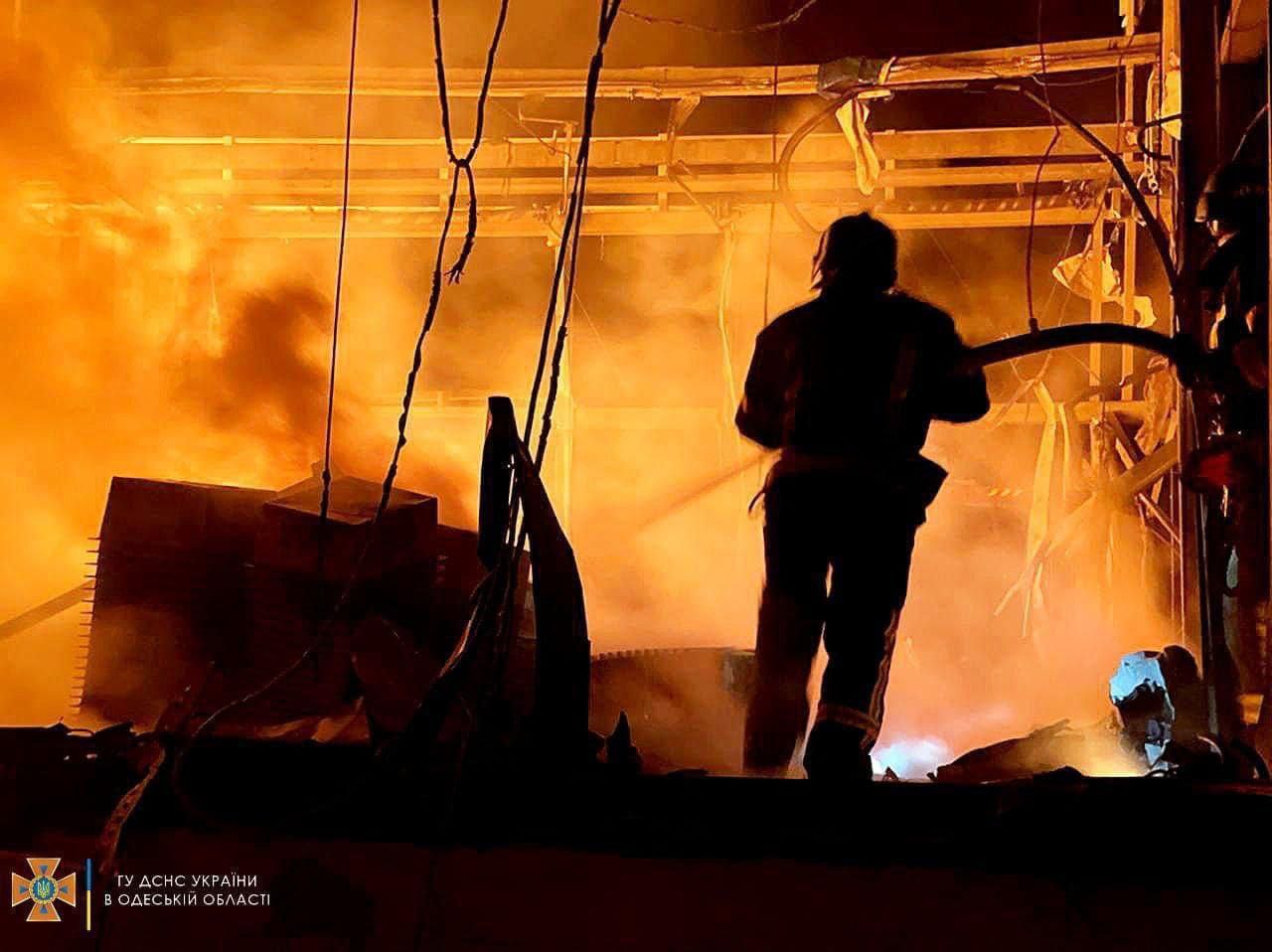 08:25 Спасатели публикуют новые фото с ночных пожаров после "прилетов" по Одессе.