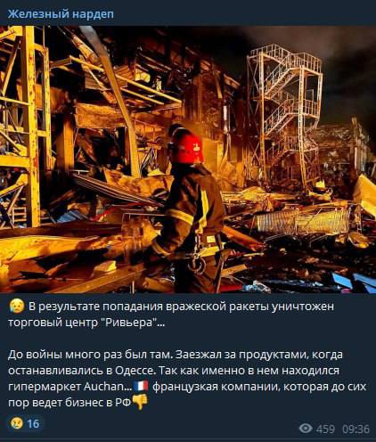 09:44 В Одессе в результате ракетного острела уничтожен ТЦ "Ривьера".