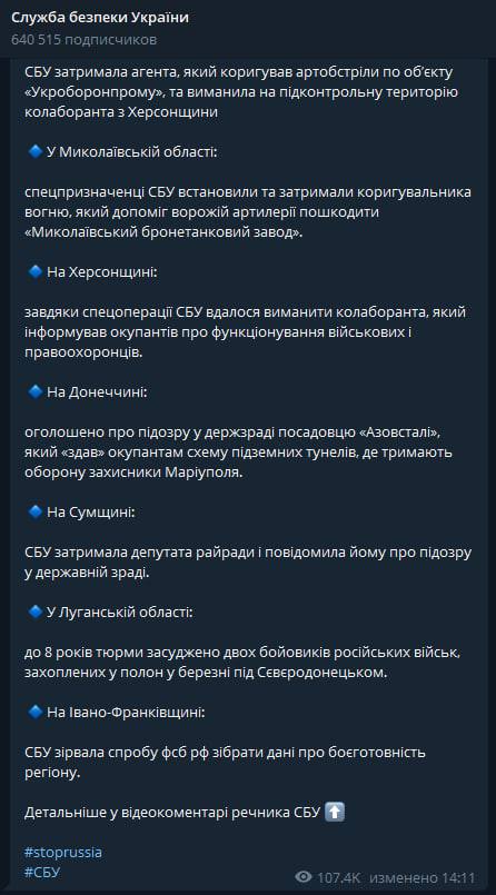 1. "В обращении к парламенту Словакии поблагодарил за мощную санкционную и военную поддержку. Объяснил нашу точку зрения, почему энергетическое сотрудничество с Россией не может рассматриваться отдельно от агрессивной политики этого государства".