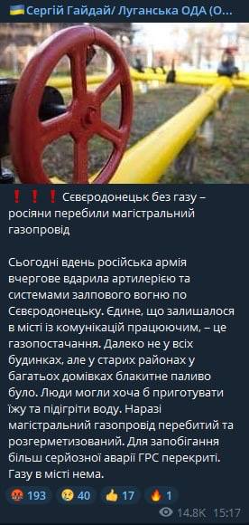 – россияне продолжают обстреливать дорогу Лисичанск-Бахмут, в связи с чем эвакуация из области сейчас невозможна;