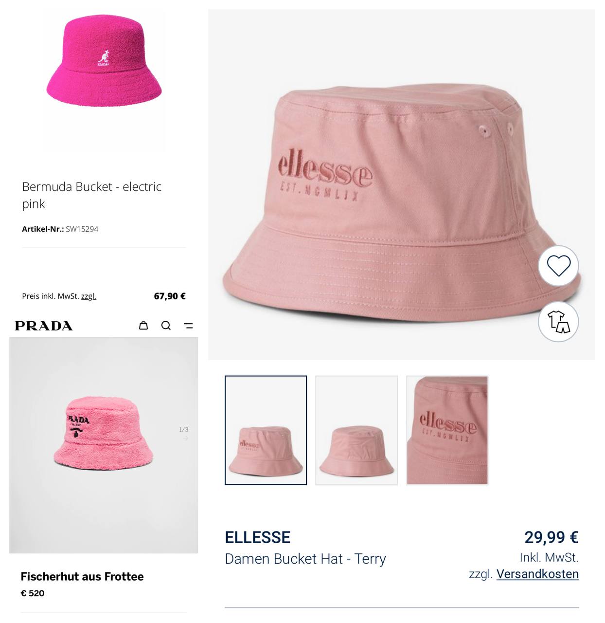 Очень похожую пушистую панаму как у KALUSH мы нашли в линейке бренда Kangol, стоит она порядка 2000 грн. Подобные есть у премиум брендов Prada и Isabel Marant, но там цены стартуют от 500 евро и выше.