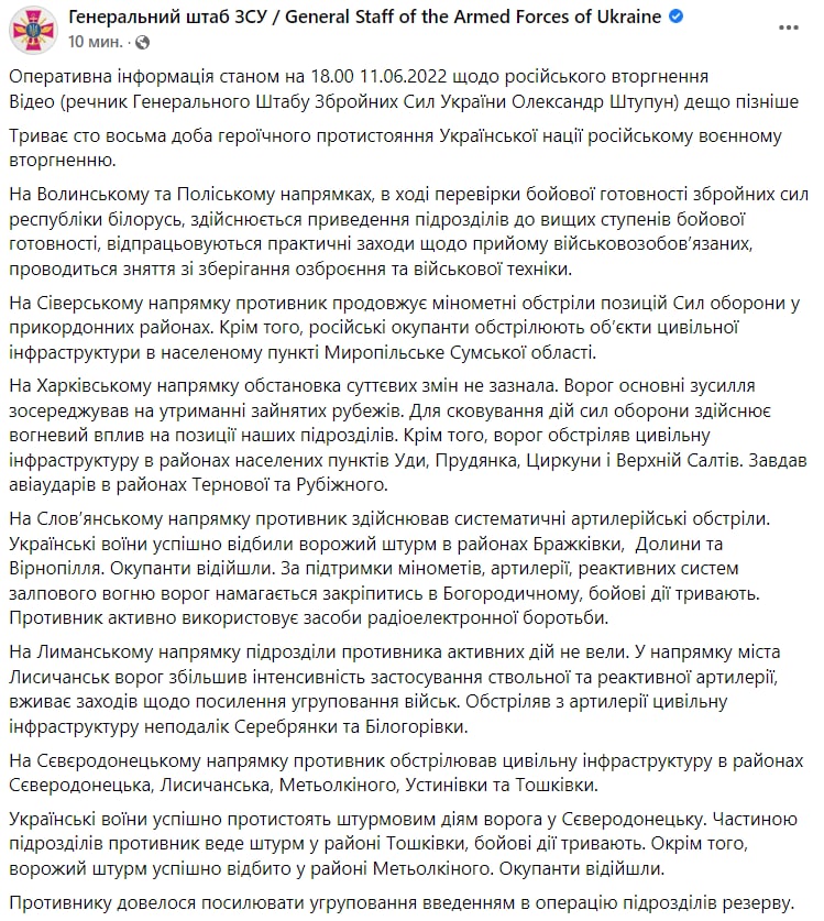 Война в Украине продолжается уже 108-й день. "Страна" следит за происходящим 11 июня в обновляемом материале.
