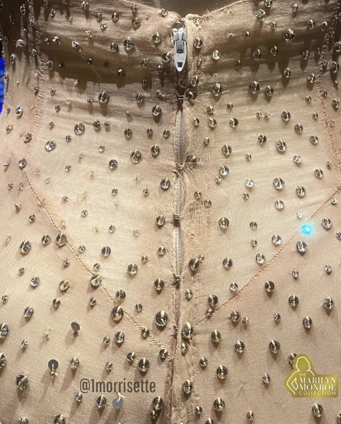 Ким Кардашьян растянула легендарное платье Мэрилин Монро и потеряла стразы. Фото