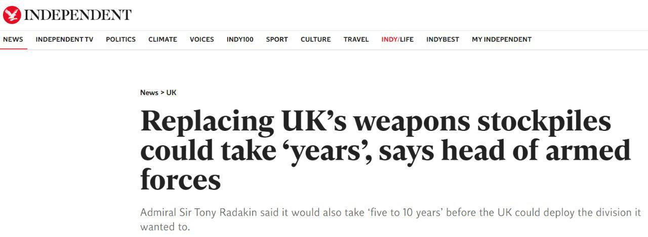 Великобритании потребуется несколько лет, чтобы восполнить запасы вооружения, истощенные в связи с поставками в Украину.