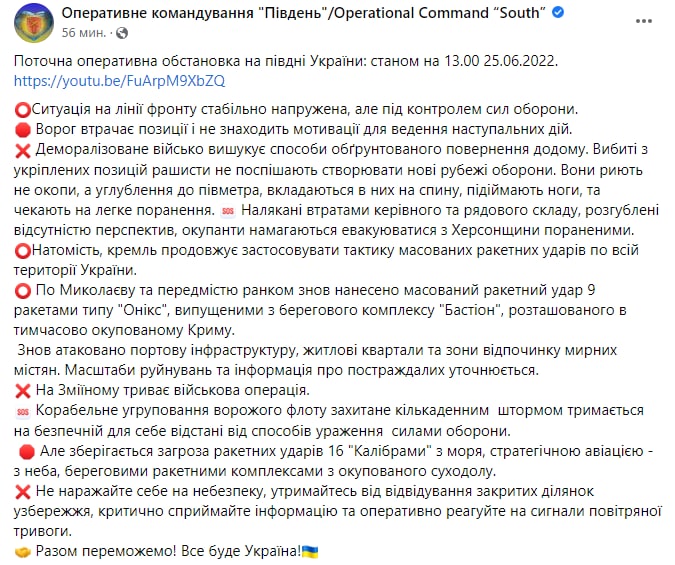 Отметим, что одной из целей "спецоперации" в России называли захват территорий Одесской и Николаевской областей. Об этом российские военные говорили еще в конце апреля.