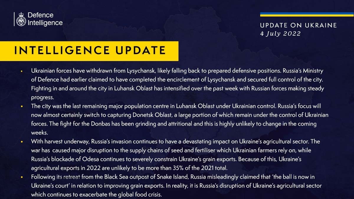 "Теперь внимание России почти наверняка переключится на захват Донецкой области, большая часть которой остается под контролем украинских сил", - сообщили в разведке Британии.