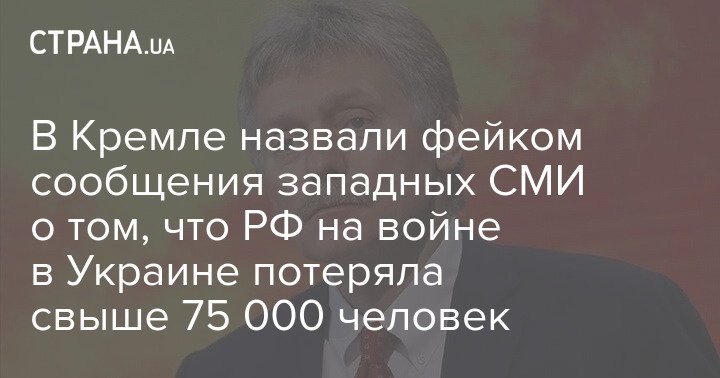 В Кремле назвали фейком сообщения западных СМИ о том, что РФ на войне в Украине потеряла свыше 75 000 человек