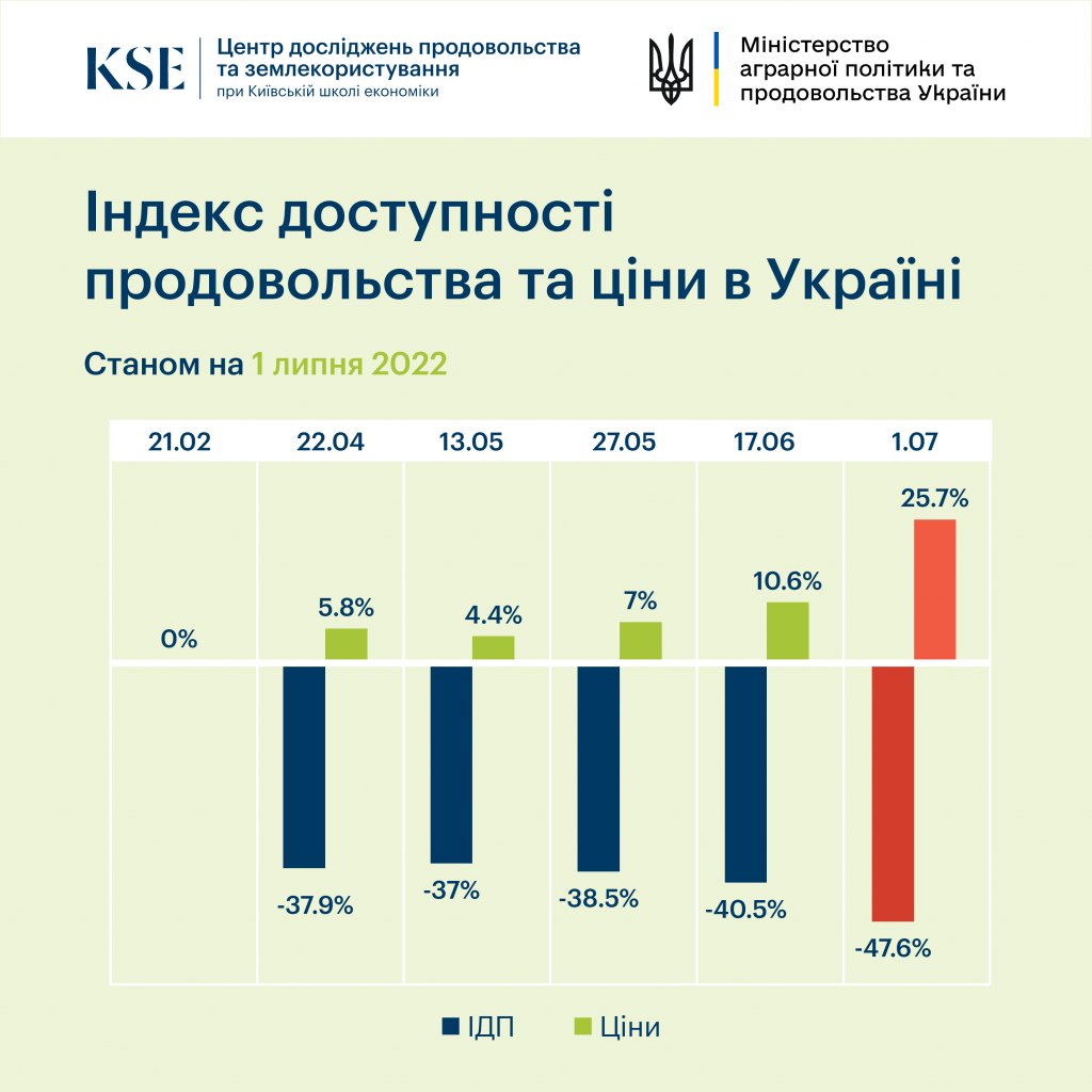 По данным на конец июня индекс доступности продовольствия (ИДП) в Украине упал на 47,6% по сравнению с аналогичным периодом прошлого года. Это произошло из-за подорожания основных продуктов питания.