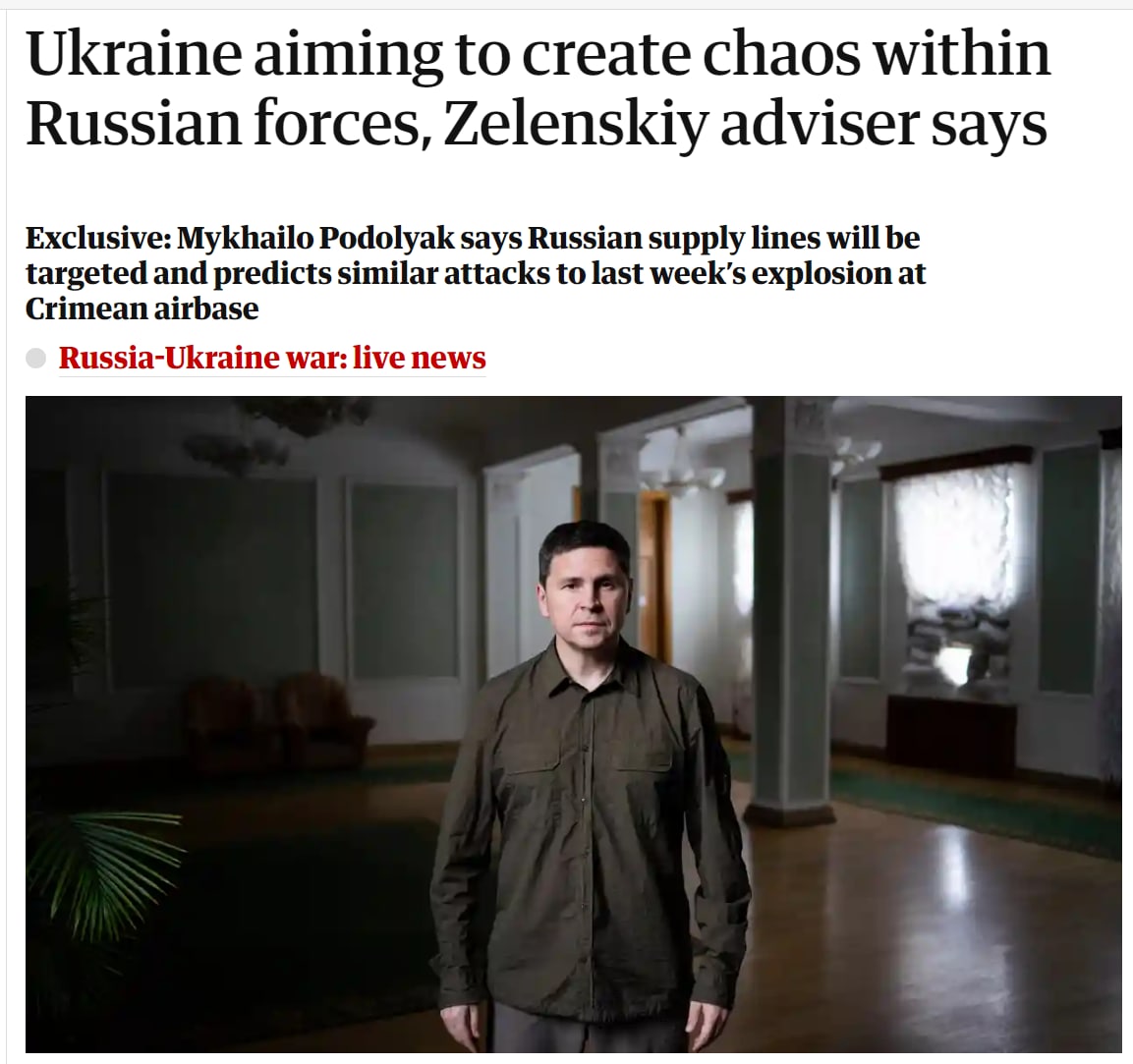 08:27 Советник главы ОП Михаил Подоляк анонсировал новые взрывы Крыму в течение 2-3 ближайших месяцев. Об этом он заявил в интервью The Guardian.