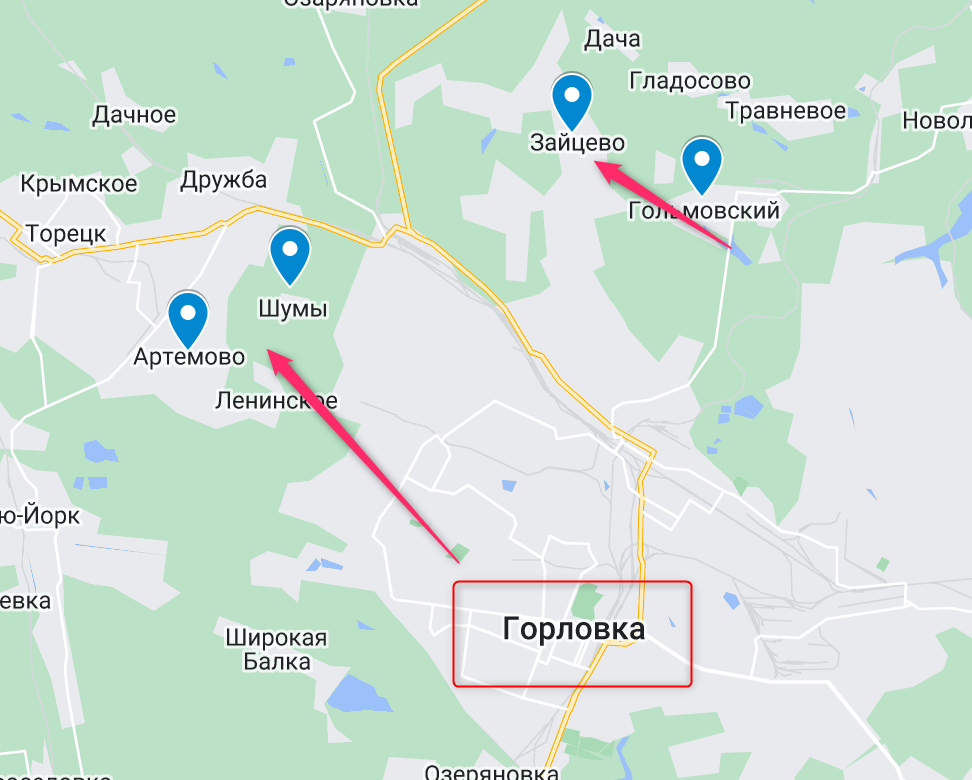 4. Россияне пытаются продвигаться к северо-западу от Горловки: они пошли в наступление на Зализне (Артемово), Шумы и Зайцево. Как сообщает Генштаб - безуспешно. Но, по сути, идет атака на еще один крупный укрепрайон ВСУ.