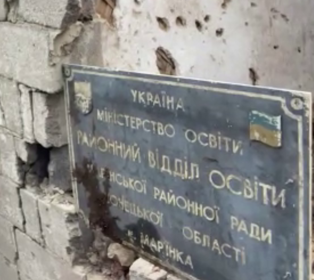 Российские паблики выкладывают видео из Марьинки, где на одном из разрушенных зданий написано "Районный отдел образования". То есть бои уже где-то в центре города.