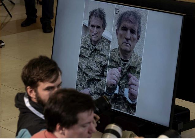 До войны Медведчук часто изображался в безупречно сшитых костюмах на встречах с российским лидером, а на недавних фотографиях, опубликованных Украиной, Медведчук изображен в тюремной форме и в наручниках.