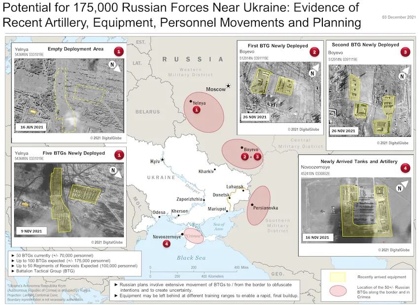 Французские и немецкие официальные лица не могли понять, почему Путин пытается вторгнуться и оккупировать большую страну, где на границе сосредоточено от 80 до 90 тысяч военнослужащих. Другие утверждали, что русские проводили учения, или имитировали их, чтобы скрыть цель, не связанную с вторжением.