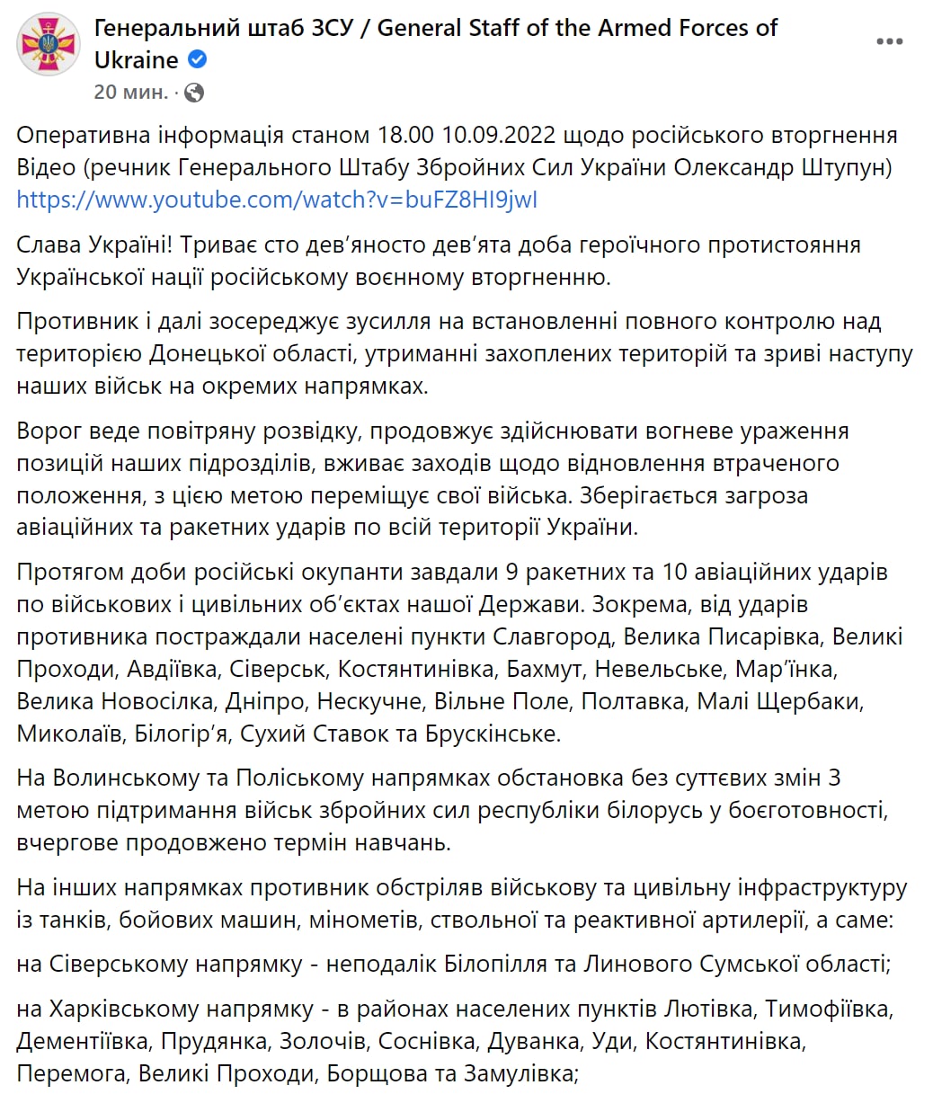 Война в Украине продолжается уже 199-й день. "Страна" следит за происходящим 10 сентября в обновляемом материале.