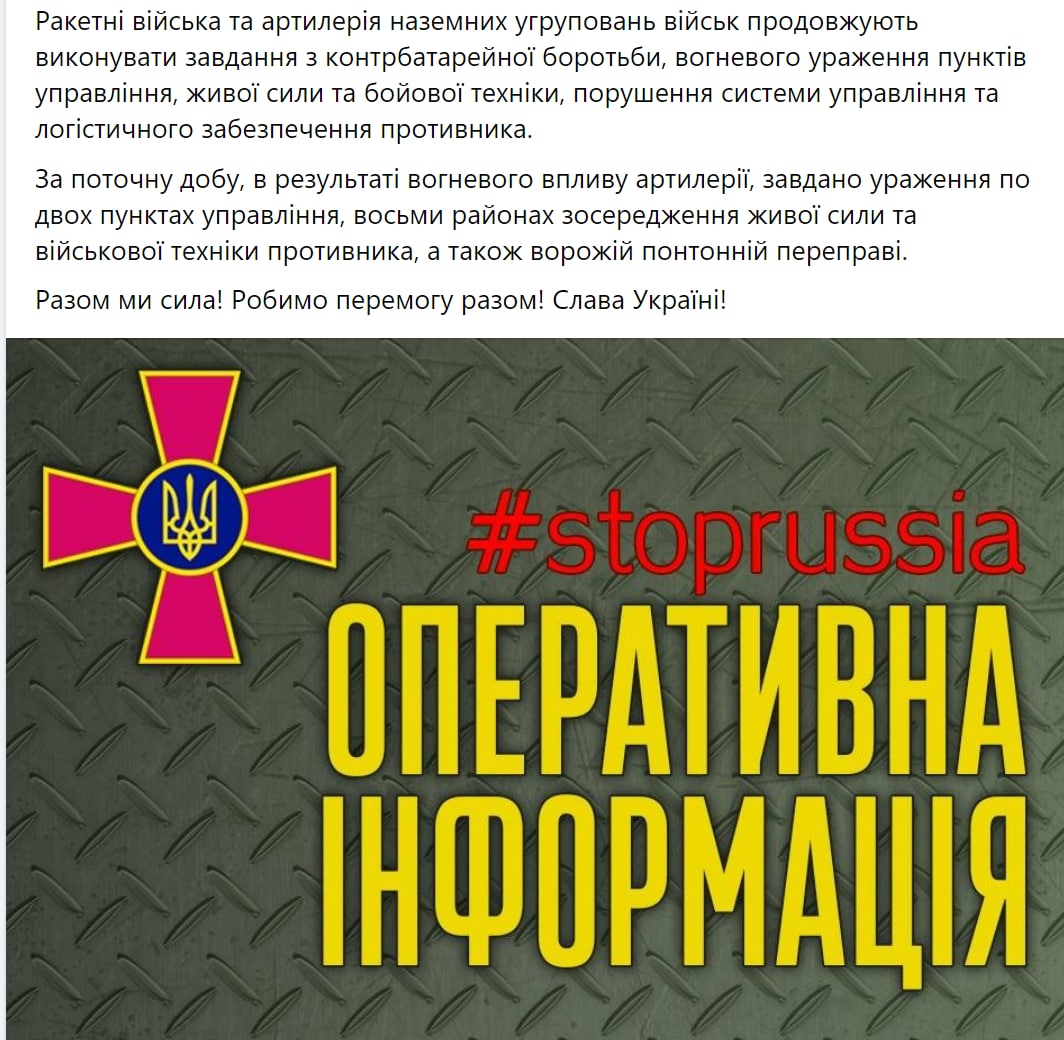 Об этом говорится в вечерней сводке.