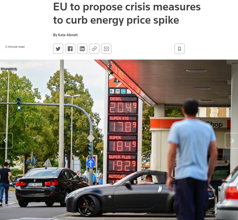 Сегодня Евросоюз согласует план по борьбе с энергокризисом. Агентство Reuters ознакомилось с проектом плана и сообщает, что документ будет включать два момента: ограничение прибыли энергокомпаний и сокращение потребления.